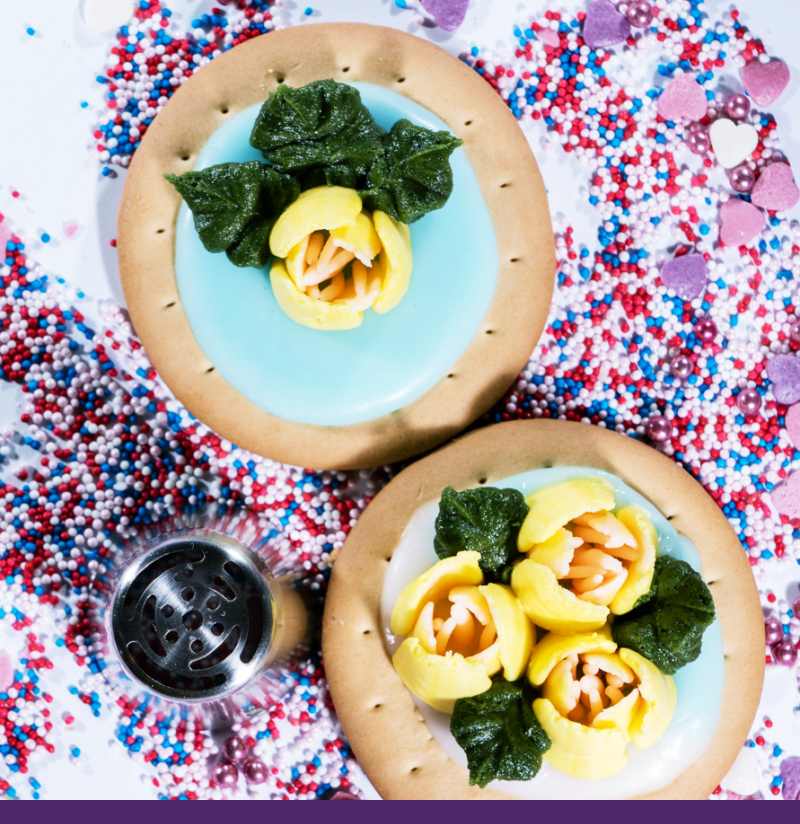 Кондитерские насадки Tulip приятно взять в руки, а работа с ними доставит вам удовольствие. Насадка 244 (№2 Тюльпан шесть лепестков) имеет шесть симметричных лепестков и семь тычинок в центре. Насадка проста в использовании, с этой насадкой ваш цветок получится как настоящий, со множеством деталей! В зависимости от плотности отсаживаемой массы и вашего давления на кондитерский мешок вы отсадите бутон размером 25-30 мм. Для увеличения бутона дополнительно используйте насадку лепесток.